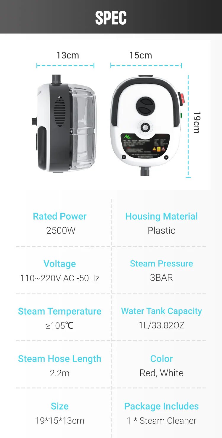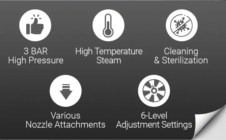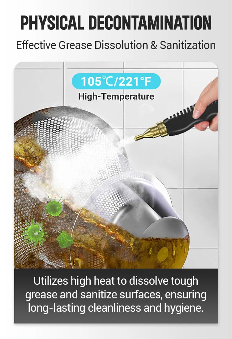 🫧High Pressure Cleaning: Up to 3.5Bar/50 PSI, steam cleaner effectively removes deep grime, ensuring thorough cleanliness beyond just surface dirt.