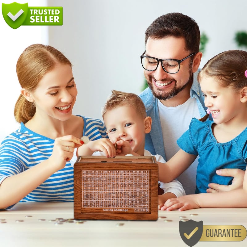Say goodbye to tedious saving habits and hello to engaging family challenges. Our box turns saving into a game, making it enjoyable for kids and adults alike. Experience the joy of shared achievements and foster cooperation in reaching financial goals.